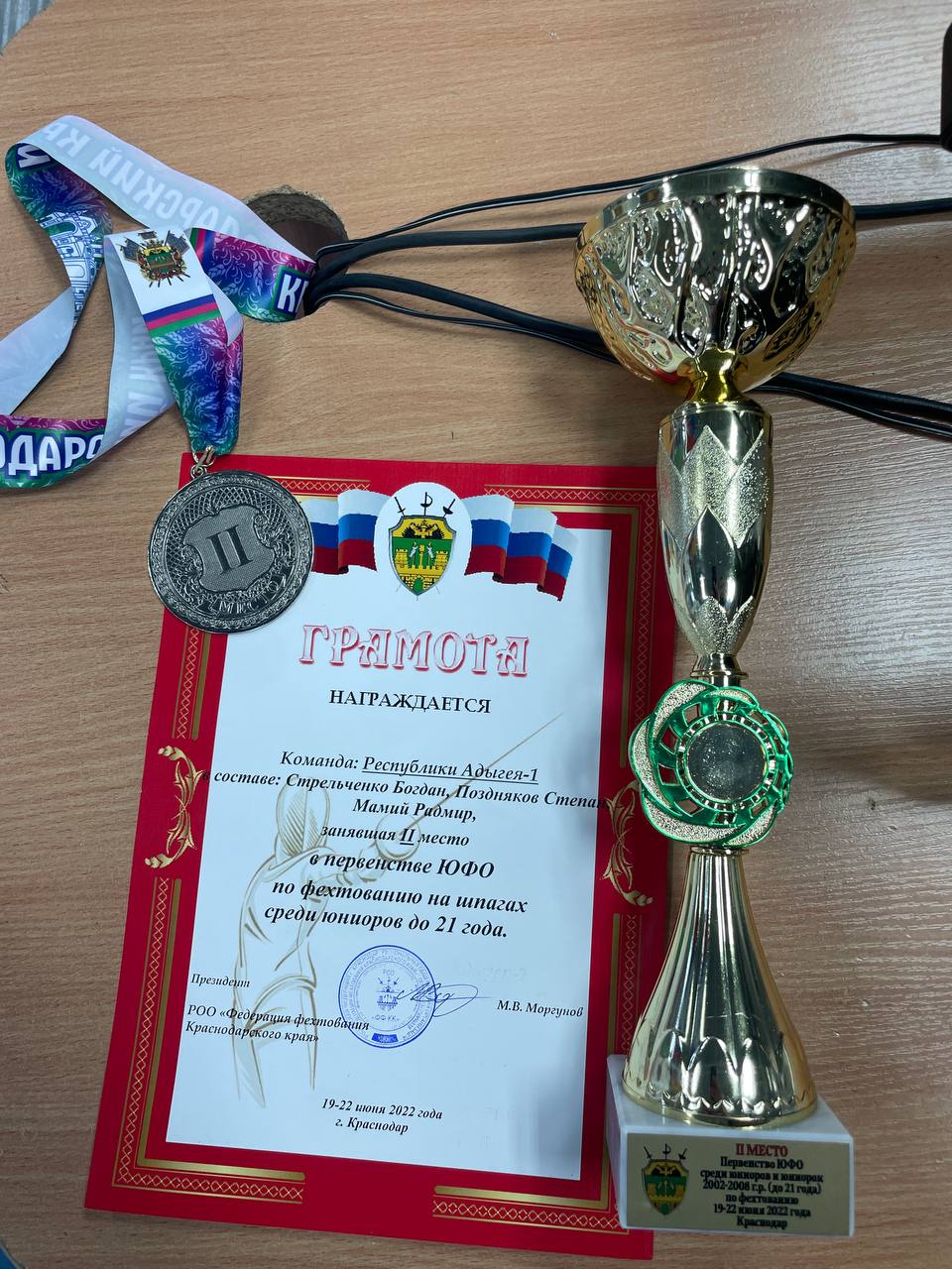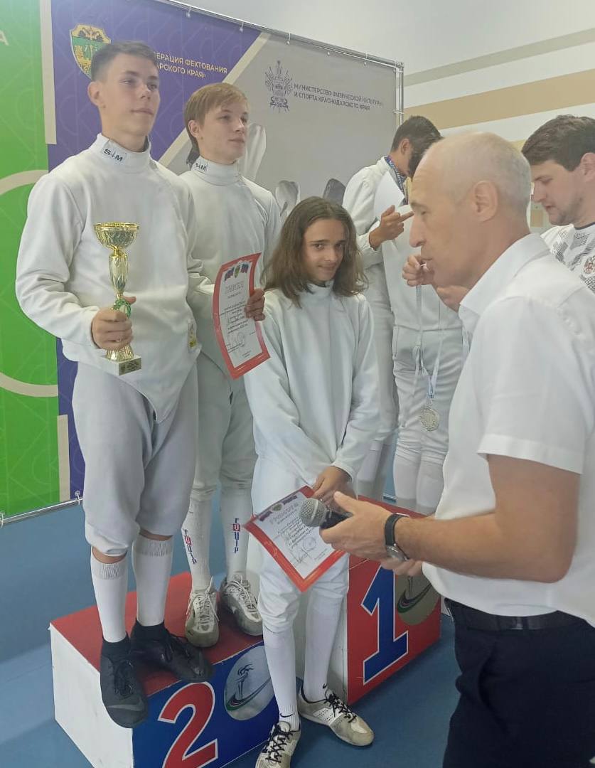 Наши юноши Стрельченко Богдан, Поздняков Степан и Мамий Радмир завоевали серебряные медали в командном зачёте на шпагах!
