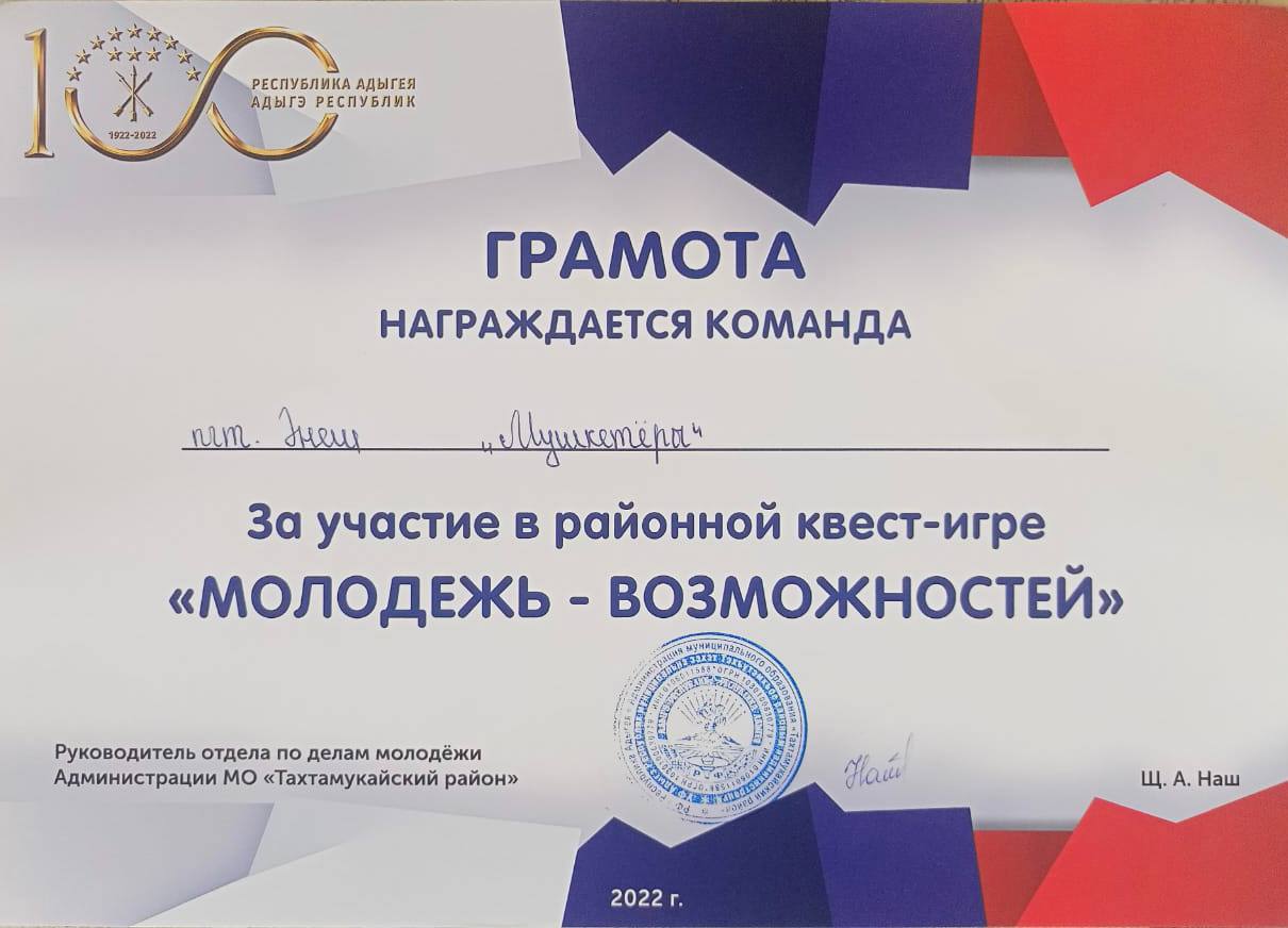 Приняли участие в квест-игре "Молодежь - Возможностей", посвященной 100 - летию государственности Республики Адыгея!